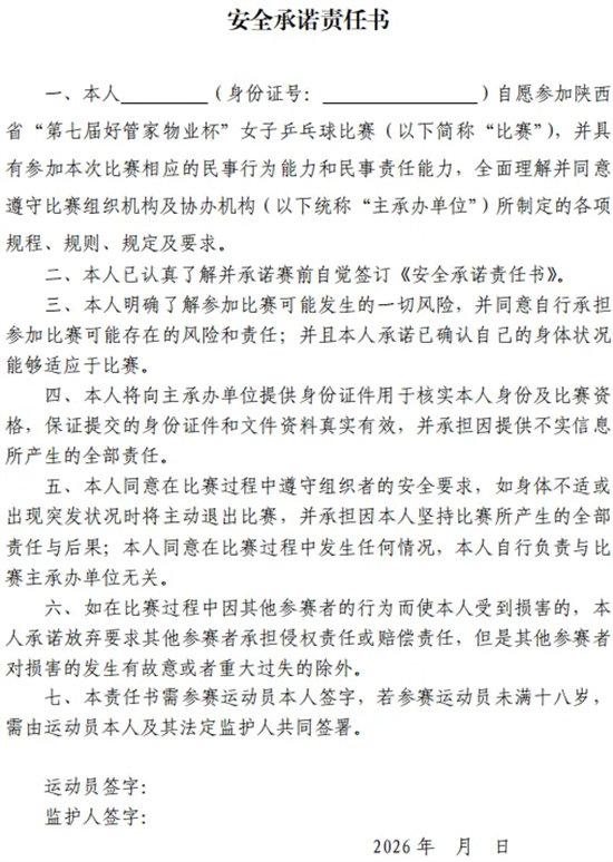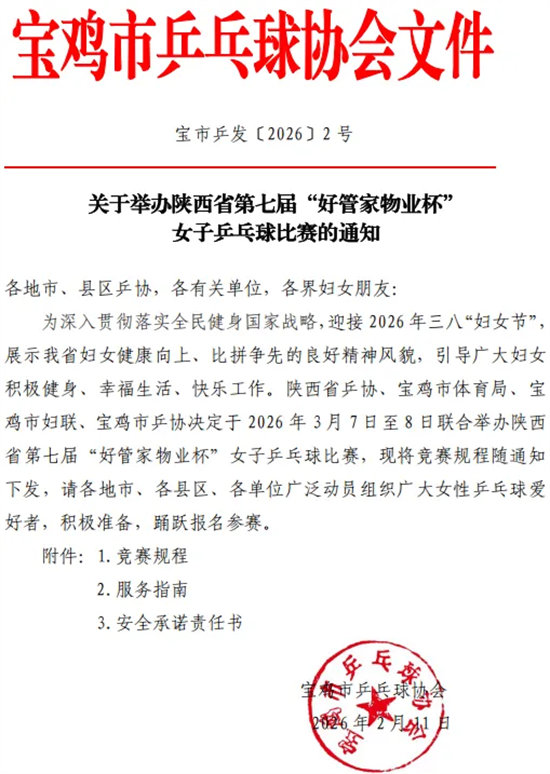 关于举办陕西省第七届“好管家物业杯”女子乒乓球比赛的通知