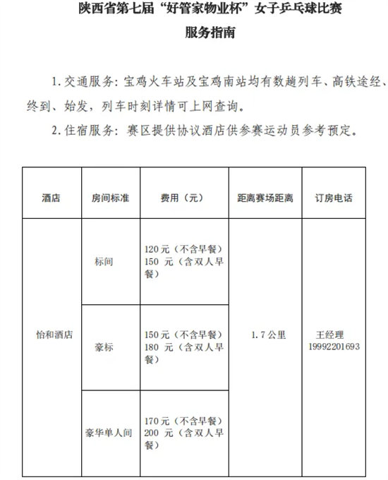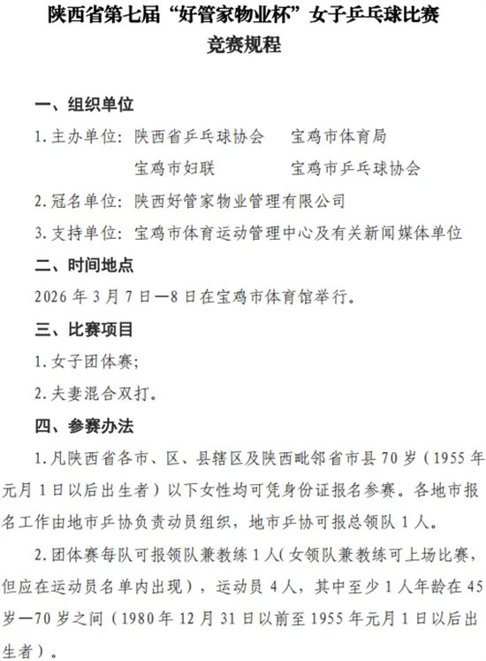 ·关于举办陕西省第七届“好管家物业杯”女子乒乓球比赛