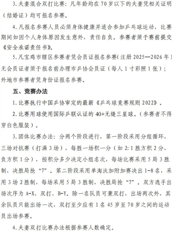 ·陕西·宝鸡2025第43届“百合杯”乒乓球联赛补充